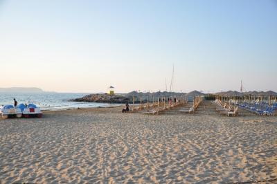 Pláže je cca 5 minut od hotelu. Můžete si zaplatit lehátka a slunečník. My jsme si koupili svůj malý slunečník a vozili jsme si ho s sebou. Pláž je písečná s pozvolným vstupem do moře. Často jsme měli celkem velké vlny a dost foukalo. Moře bylo krásně čisté a celkem teplé.