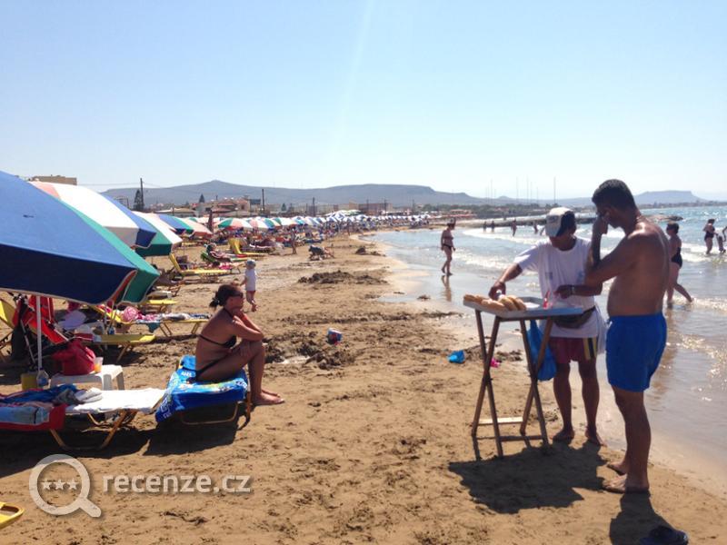 hotelová pláž(beatch set 5eur 2leh.+slunečník), výhoda je že je u pláže bar,kde je milá obsluha dá se odnést pití až na pláž v kelímku..Allinclusive.Tato pláž nás tedy nenadc hla,je to rovné moře v zátoce..něco jak český rybník(tak jsme tomu říkali)Ale využijí jí starší lidé,nebo rodiny s malími dětmi,kteřží chtějí mít klid a rovné moře bez sebemenších vlnek..pozvolný vstup do moře. Pro ty co mají rádi VLNY....prostě to pravé moře,vyblbnutí se v moři,pozvolný vstup,klasika xx řad slunečníků s lehátky(set6eur)..dloluhá písčitá pláž...tak mohu doporučit od moře VLEVO..asi tak 10minut pomalé chúze,je přesně tato pláž,vyplatí se jít tam.Zde je možnost i zakoupení různých dobrůtek,obr koblih2e,kukuřice2.5e..