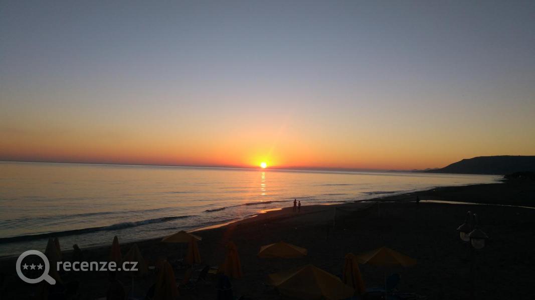Pláž pěkná, čistá, bez kamínků. Moře také. Lehatka na pláži za 4€ na den.