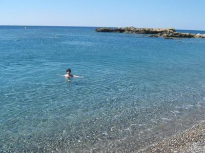 drobné kamínky, po pár metrech hloubka, občas větší vlny, na pláži je klid a pohoda, lehátka byla zdarma