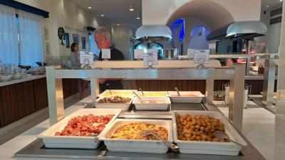 Strava byla pestrá a bohatá, stále doplňovaná. Personál byl ochotný a rychle uklízel nádobí ze stolů a připravoval nová místa pro příchozí. Nikdy nebyl problém s místem nebo s chybějícím jídlem. Ryby každý den, ovoce, saláty i výborně zákusky.