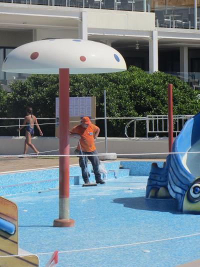 Vbavení hotelu je na poměrně ucházející úrovni a odpovídá stáří hotelu. Trochu zklamání bylo z chování recepce, přijeli jsme v kolem 12:00h a nebyl pro nás k disposici pokoj. Recepční nám bylo sděleno, že bude zhruba za 1h. Po 1,5 hodinovém čekání, kdy jsme seděli s pětiletou vnučkou přímo u recpece a paní recepční se na nás dívala, jsem se šel zeptat zda už je pokoj k disposici a recepční mi s úsměvem předala dveřní kartu, klíč od trezoru a kartičky na ručník. Když jsem se zeptal, kde jsou pokoje umístěny, bylo mi řečeno že "tam". Naštěstí se objevil rusky hovořící portýr, který se nabídl, že nám kufry na pokoj dopraví a doprovodí nás. Všechna komunikace v hotelu probíhá v angličtině, němčině a ruštině, méně jazykově vybavení mají proto smůlu. Animační programy probíhají v němčině a ruštině, český klient, pokud neovládá jazyk má smůlu a to především děti. Bazény jsou v areálu 4, z toho 2 dětské. Je zde jeden tobogán a jedna skluzavka větší a čtyři skluzavky v dětském bazénu. V tomto bazénu nastal velký problém, kdy jeden den po příchodu k tomuto bazénu byl tento vypuštěný a pracoval zde jeden řemeslník, který pomocí jednoduchého nářadí a prstů spároval poškozený mozaikový obklad dna bazénu. Dotazoval jsem se na recpeci, kdy bude oprava ukončena, bylo mi s úsměvem sděleno, že to nikdo neví. Druhý den, bylo vše opraveno a celý den byl bazén pomocí hadice o průměru 0,5" napoušťěn. Konečně kolem 17:30h bylo dílo hotovo. Protože naší vnučce není ještě 6 let, nebyla přísným plavčíkem vpuštěna na větší tobogán a skluzavku i když jsem se zaručil za její bezpečnost. Ve výsledku tedy ze 6 dní pobytu, jsme nemohli 2 dny využít dětský bazén, kvůli kterému jsme tam s vnučkou vlastně jeli.