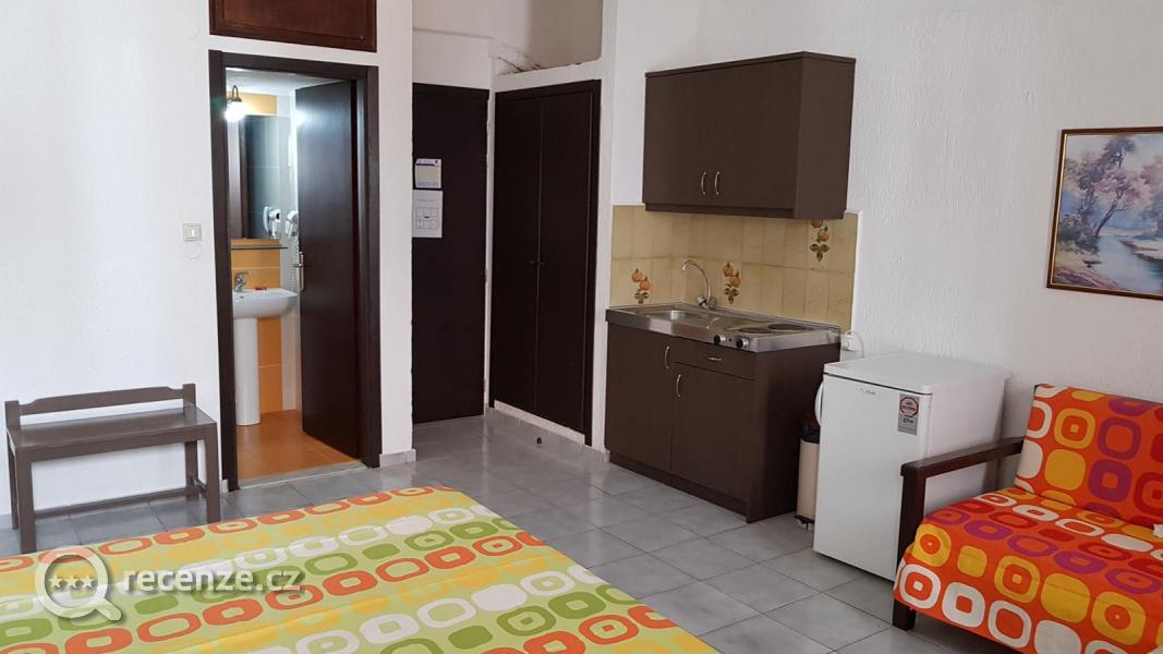 Jde o rodinný podnik a jeho majitelé jsou milí, usměvaví a vstřícní lidé, včetně jejich personálu. V areálu u restaurace s jídelnou je bazén s lehátky a slunečníky zdarma. Během našeho pobytu probíhaly finální práce, aby byly do léta zprovozněny další apartmány s druhým bazénem. Majitelé hotelu vyrábí a prodávají domácí olivový olej.