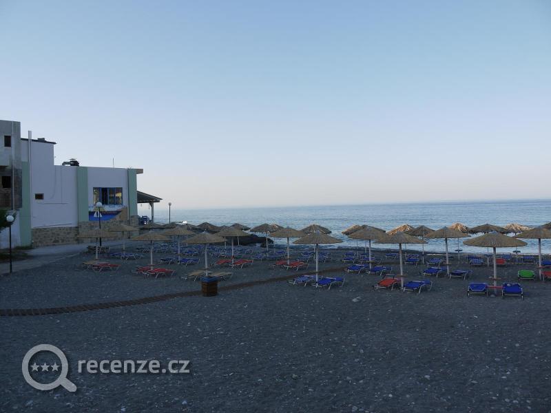 Menší pláž pár kroků od hotelu. Dostatek lehátek i slunečníků, sice 2 eura za lehátko, ale to není zas takový problém. Moře během celého týdne bylo klidné a křišťálově čisté.