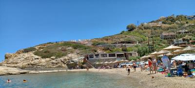 Pláž ,pisečna, ale v moři kameny a oblazky ,Zkratka rozhodně doporučuji boty do vody.Vstup pozvolný Pláž a moře bylo teple a krasně čiste že bylo vidět krasně na dno.Pláž je veřejna a plati se slunečniky a lehatka.Ja nevyužila a vždy sem si lehla na svou podložku a osušku do pisku.