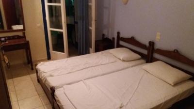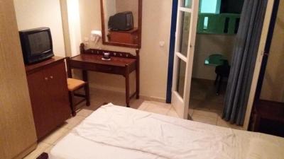 Zde máme smíšené pocity.Úklid pokojů zajištěn vcelku dostatečně, až jsme museli úklid pro dopolední klid odmítat. Ale na rozdíl od vyobrazených světlých pokojů v reklamách na hotelové ubytování, kde jsou prezentovány široké nedělené dvoupostele, jsme byli ubytováni ve vedlejší zapadlé budově s výhledem do úzké uličky mezi hlavní budovou a to přestože jsem v objednávce uvedl, že požadujeme okno s balkonem směrem na hlavní ulici a moře. Pokoj byl s malým balkonkem s kompresorem klimošky nad hlavou.Samotné ovládání klimatizace je bez návodu a pokud nemáte technické cítění, tak si ji jen s potížemi zapnete.Skladby TV programu (zpravodajských) naprosto nevhodná. 2 řecké a 1 CNN