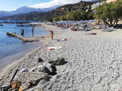 Přímo v místě Plakis lepší jít na západní pláž. Třikrát za týden někdo přišel vybírat za lehátka, tak je lepší si u nich objednat pivo za 2,50 €, než paltit 5€ za stunečník a lehátka.