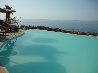 Tento hotel jsem si zamilovala na první pohled, bylo to něco jiného, než to, kam jsme jezdili téměř pokaždé ( písečné pláže s pozvolným vstupem plné lidí)...komplex umístěný ve skalách, okolo nevede rušná silnice ani nestojí jiné hotely a neruší davy lidí! Proto jsem byla rozhodnuta okamžitě pobyt koupit a počítala s menšími problémy, které jsem vyčetla v recenzích!