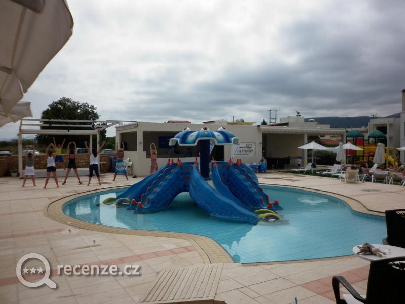 Hotel nabízí hostům vstupní halu s recepcí (internetový koutek na recepci zdarma), WIFI v celém hotelu za poplatek, hlavní restaurace a ala carte taverna, která má výhled na moře, je za poplatek. Ve venkovním areálu se nachází bazén se sladkou vodou, další dva bazény pro děti se skluzavkou, další vyhřívaný bazén vevnitř. Lehátka a slunečníky jsou u bazénu zdarma. Hotel má pro své klienty připravené animační programy každý den, dále i cvičení i bazénu.
