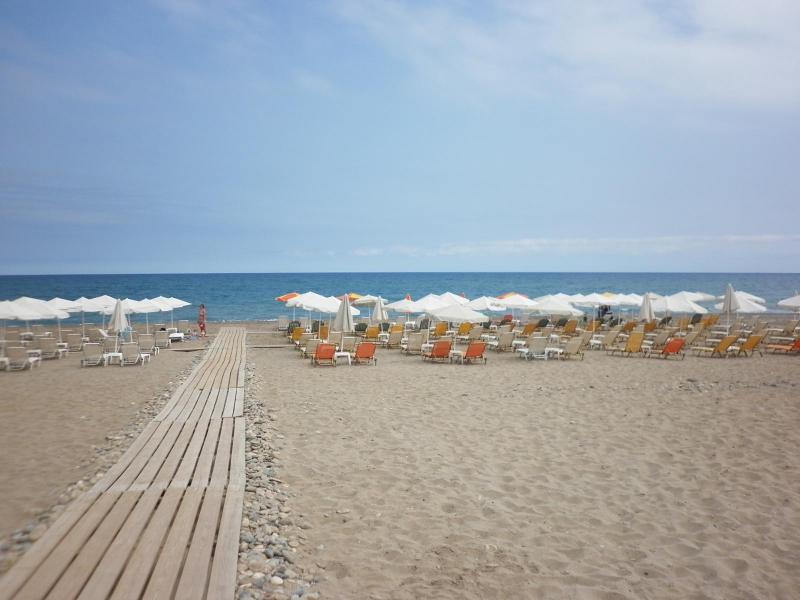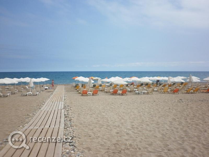 Hotel se nachází přímo na písčito – oblázkové pláži. Lehátka a slunečníky jsou na pláži za poplatek.