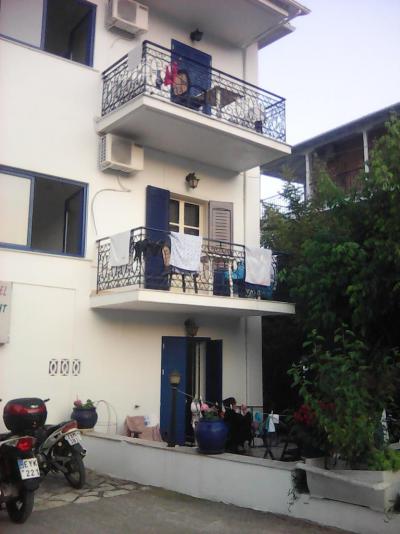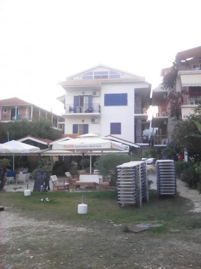 Ubytování byl asi největší šok. Pokoj tak mrňavý, že nám u hlavy řvala celou noc lednice, která byla rozbitá (ulomená dvířka od výparníku) už na začátku sezony. Dveře na balkon šly otevřít pouze s použitím velké síly, protože tam překážely postele. Tělnatější osoby budou mít problém se do pokoje vejít, i štíhlejší se musejí míjet bokem. Bohužel jsme měli pokoj ne s výhledem na moře, ale na příjezdovou cestu a hlavně na západní stranu. Takže nám tam celé odpoledne až do západu pražilo slunce. Pan majitel měl už dávno zajistit zastínění balkonů markýzou, což je v Řecku naprosto běžné. Po příjezdu slíbil slunečník, dostali jsme ho den před odjezdem, že by se obtěžoval nějakým přimontováním - ani náhodou. Tento majitel nemá absolutně o nic zájem, hlavně že schrábne peníze, týden to klienti vydrží a pak zase budou noví.