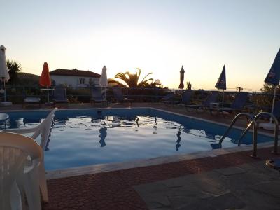 Vybavení je minimalistické. Míň už to nejde. My jsme měli dvoulůžkový pokoj. To znamená dva talíře mělké, dva hluboké. Dva příbory, dvě skleničky a dva hrnečky. Jeden rendlík a hlubší pánev. Dvě postele (pevné, nevrzací) skříň i s ramínky. Noční stolky se třemi šuplíky a toaletní stolek se dvěma. Ty šuplíky jsme ocenili. Na balkoně dvě židle a stůl. Chyběl nám tam sušák na prádlo. (většinou bývá). Personál v pohodě až na nerudného majitele (nebo co to bylo). Když vás pozdraví, můžete slavit. Obsluhuje pool bar. Za celý pobyt tam nikdo nebyl. (Postavil si penzion, ale lezou mu tam lidi). Zbytek rodiny uklízí, usmívá se i zdraví. Problémy je lepší řešit s nimi. Bazén pěkný, teplý a čistý. Jen po odchodu musí mít majitel lehátka a slunečníky v původní pozici. Jinak vrčí. (Ale to dělá celý den) U bazénu je zdarma WI-FI. Dosáhne do většiny pokojů i když slabě.