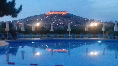 Vybavení hotelu je ve stylu retro z 60. let, jinak všude wi-fi zdarma, u hotelu jsou kurty, hřiště, dětské hřiště a u moře bazén s mořskou vodou. Skvělý výhled na hrad a město při večeři nebo od bazénu. Personál přátelský.