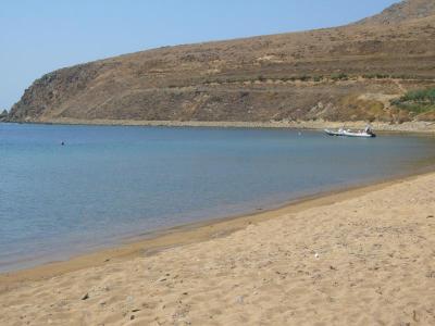 Písečná pláž, lehátka zdarma (jako na celém ostrově!!!) Klidné moře, vhodné pro děti.