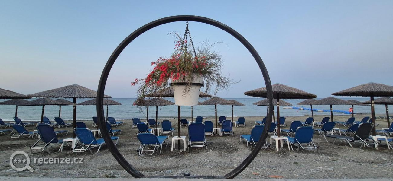 Dostatečně velká pláž , ani kolem poledne nebyl problém najít volné lehátko se slunečníkem. Poplatek činí 8 Euro. My jako klienti CK *** měli lehátko zdarma. Pláž písčito oblázková, vstup do vody mírný, přes pár kamenů, da se v pohodě zvládnout bez bot.
