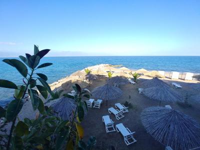 Velkou výhodou je soukromá pláž, kde si užijete nerušený klid. Nevýhodou je však umístění hotelu na kopci nad pláží, které vrhá odpoledne stín na velkou část pláže.