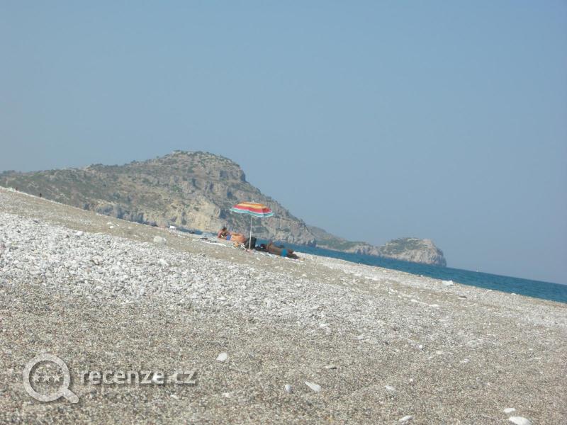 Pláž široká, každý si zde najde své klidné místo. Kamínky. Spíše samota a soukromí, žádní obtěžující plážoví prodejci. Od hotelu cca 300m.