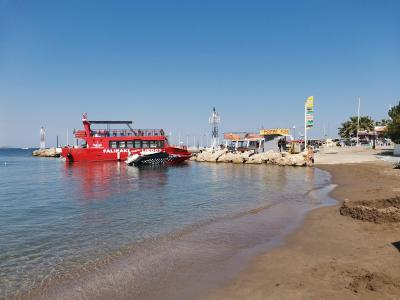Moře bylo krásné, čisté a s pozvolným vstupem. Blíže hotelu byla velice úzká pláž, lehátka a slunečníky za poplatek. Procházkou přes přístav byla další o něco širší pláž skoro bez vln.