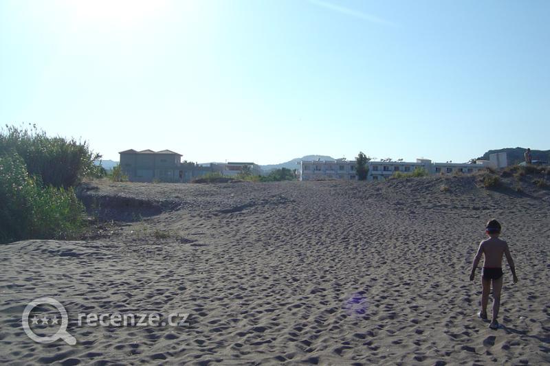 K moři opravdu 100 m, ale tak 40 m přes horký písek.