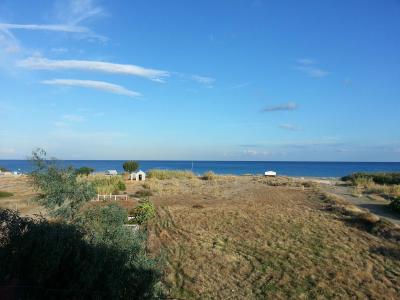 100 m před hotelem dlouhá písčitá pláž, vhodné pro děti. Slunečníky a lehátka za 8 Eur.na den. K dispozici i sprchy. Moře čisté.