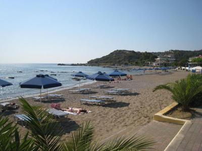 Jednoznačná nevýhoda viz výše, vzdálenost do centra dle googlu 1,3 km. Kdo chce jít na procházku, cíl si najde, kostelík na hoře za studii, vzdálenější pláže Anthony Quinn atd. Lepší je půjčit skútr a projet si víc cílů. Doporučuji Údolí motýlů a klášter Kalopetra (výborné občerstavení), Epta Piges (Sedm pramenů), ostrov Simi, město Rhodos atd. Ve Faliraki spousta míst, kde se dá dobře najíst, na pláži i ve městě. Výborná řecká kuchyně, najedli jsme se dobře všude.