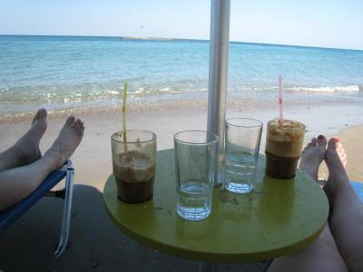 Snídaně servírované, ne moc velké, bez jogurtu, lupínků atd, jak jsme zvyklí v hotelech. Ale dostačuje, najedli jsme se vždy dost. Džus jedna sklenička, možná by přidali, nevím, nežádali jsme. Káva k dispozici, tu jsme si vždy sami dolili. Čas snídaně 8,30-10 hod. Nikdy jsme v Meropi nevečeřeli, jak vařili tedy nevím. Frapé ale dělá Michalis celkem dobré za 2€.