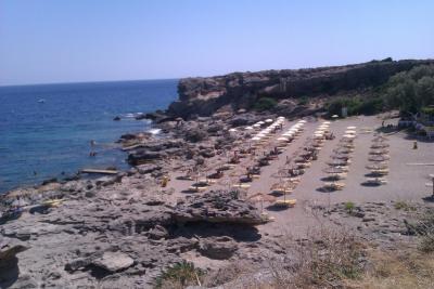 pláž oblázkovo-písčitá, přítel zklamán šnorchlováním, v moři toho moc není, pár rybiček, ale moře krásné, čisté a teplé. Jen ty neskutečně drahý lehátky, 4E za lehátko je dost, ale je to po celém Rhodosu, takže se tomu nevyhnete pokud chcete pohodlí a nemít písek všude:-o)