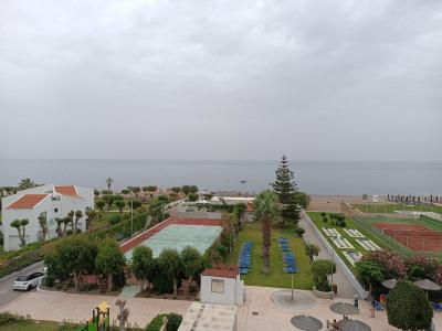 Měli jsme dvoulůžkový pokoj s přistýlkou, s výhledem na moře a prostorným balkonem. Na balkoně bylo kromě stolku a tří židlí také lehátko. Velikost pokoje je dostačující. Nábytek v pokoji není nijak moderní, ale dle mého názoru opět dostačující, pokoje jsou čisté. Překvapilo mě, že v koupelně nebyla zásuvka, avšak lze pak zásuvku (včetně fénu) použít u zrcadla v pokoji.