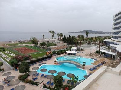Vstupní hala s recepcí, kolem recepce lze dojít do konferenční místnosti. Ze vstupní haly dále můžeme projít rovnou do restaurace nebo kolem lobby baru na terasu, ze které je výhled na bazén i moře. Animační program přes den v prostoru u bazénu, večer pak např. živá hudba, tance, kouzelník, disco apod. K dispozici také např. tenisový kurt.