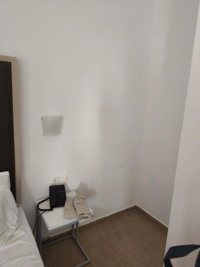 Pokoj není zcela vybaven. Chybí jakákoliv skříň či polička.