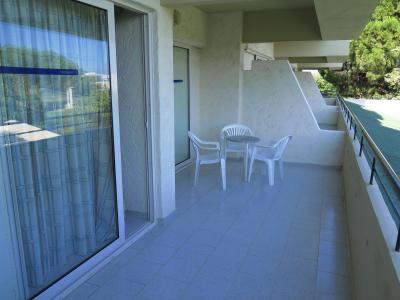 Původně jsme měli zaplacený "double room", ale vyšel na nás apartmán. Vůbec jsme se nezlobili (i když člověk chodí na pokoj jen přespat), ke standardu byl obýváček a kuchyňka...Terasa obrovská..Koupelna docela čistá, ručníky měnili za pobyt asi jednou, uklízečka vytírala každý den... Fén tam byl. Jediná nevýhoda - s tím házením toaleťáku do koše je celé Řecko trošku "nechutný".