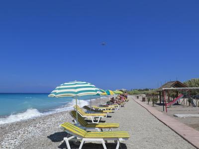 Pláž jen oblázková (horší dostupnost do moře, ale lidem s botama to šlo líp),procházkou cca 10-15 min. Cena za 2 lehátka a slunečník 7 Euro. Pokud šel člověk podél moře, najdete i za 6E. Mimo slunečníky se dá hodit deka i na oblázky. Ale jelikož se po tom blbě chodí, ležení asi taky nic moc. Pokud si půjčíte nějaké přibližovadlo, na ostrově jsou i krásnější pláže...i písčité...nebo jen kamenité dobré na šnorchlování ve vodě.
