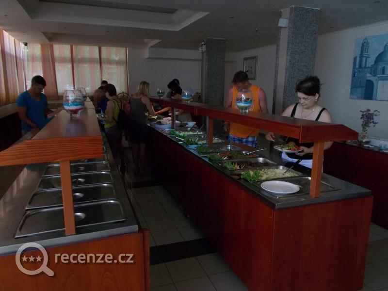 Strava All Inclusive výborná, saláty,přílohy,masa i ryby,jeden druh polévky,různé pečivo,sladké pěny a pudink, zmrzlina, ovoce, meloun, olivy. Limonády vyráběny z prášku, pivo nic moc kvality, asi jako naše 8,co se dřív točila i ve fabrikách, stolní vína a asi 4druhy tvrdýho chlastu, většinou s ledem,takže se člověk hned schladí ale neopije. Po 23hodině už vše za úplatu, takže jsme se vždy předsásobily. Jinak všeho dost.