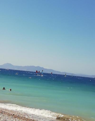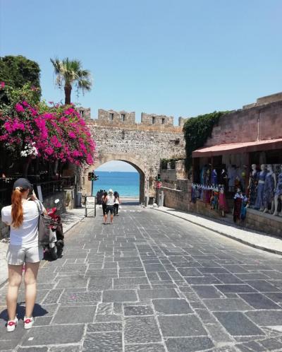 Kousíček od hotelu spousta taveren a obchůdků. Jezdí vláček od hotelu okruh městem za 9eur. 8 km hl. město Rhodos s palácem velmistrů že 14.stol.s úžasnými vysokými hradbami a starým bazarem.