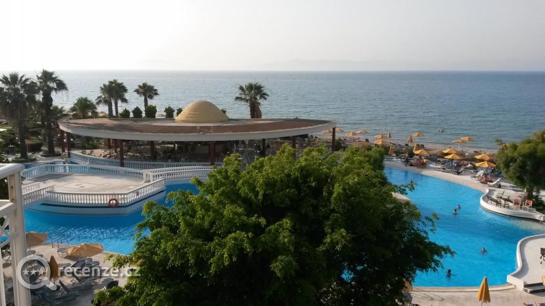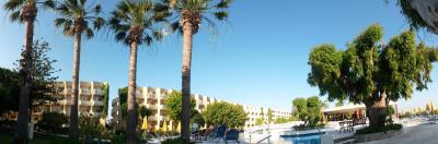 Hotel není z nejnovějších, na nábytku je již vidět "pokročilý" věk, ale všude je čisto. Vzhledem k tomu, že se jedná o celkem rozlehlý hotel, asi 7 budov, je tam mnoho bazénů, jeden velký hlavní a pak různě po areálu několik dalších včetně dětského. Hotel je v zahradě, takže kdo hledá stinná místa, určitě si je najde, protože je všude dostatek stromů a tím pádem i stínu. Personál byl velmi milý a vstřícný, všichni byli schopni se domluvit anglicky, německy.