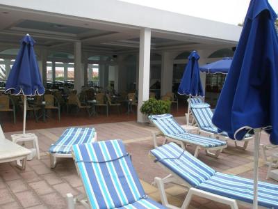 Venkovní sladkovodní bazén s pool barem, u něhož jsou lehátka se slunečníky zdarma. Vstupní hala, recepce, výtahy, restaurace, společenská místnost s TV a internetovým koutem, herna, bar, minimarket, kadeřnictví a zlatnictví. Tenisové kurty, minigolf a stolní tenis. Na pláži jsou dobré podmínky pro různé vodní sporty, zvláště windsurfing. Dětský bazén a malé hřiště. Před hotelem supermarket a půjčovna aut.