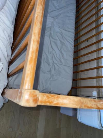 Starý sešlý nábytek, plíseň v umyvadle, špinavé matrace. Nebezpečné balkony s dětmi nepřípustné.