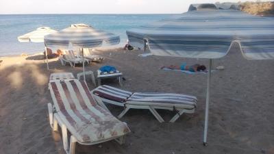 Tak pláž úplna katastrofa.Fotka v katalógu cestovky absolútne nezodpovedá realite. Pláž malá úzka a na počet hotelov absolútne nepostačujúca prepchatá. Okrem toho sme mali pocit že ležíme na smetisku a aj cesta na pláž napovedala že ideme na smetisko.Bola tam aj búda asi po bezdomococh a obrovské kopy odpadkov.Svah pláže bol zložený z navozených odpadkov hlavne z fliaš, plechoviek a igelitov. Za staré, špinavé lehátka v dezolätnom stave pýtali 10 eur .