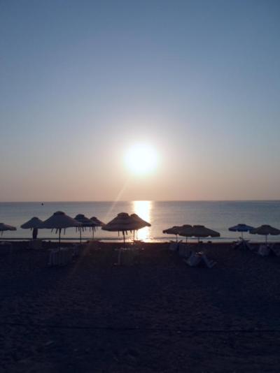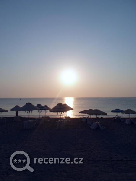 Moře bylo krásné, čisté, teplé a takřka bez vln. Boty do vody nebyly nutností. Pláž písčitá a ve vzdálenější části oblázková. Slunečníky a lehátka za poplatek.