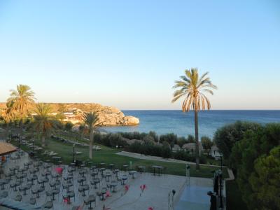 Místo pokoje Superior s výhledem na moře, jsme byli ubytováni v klidné budově, kousek od všeho, v pokoji Swim pool se sdíleným bazénem a s výhledem na moře i zátoku.