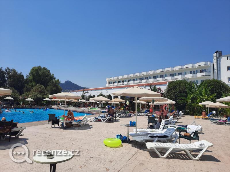 Okolí hotelu čisté, lehátek dost a zadarmo. Hodně stromů, pod které jsme se schovali před srpnovym sluníčkem. Sprchy u bazénu. Drinky podávají do plastových kelímků, které se vracejí a tak se nikde neválí žádný odpad.