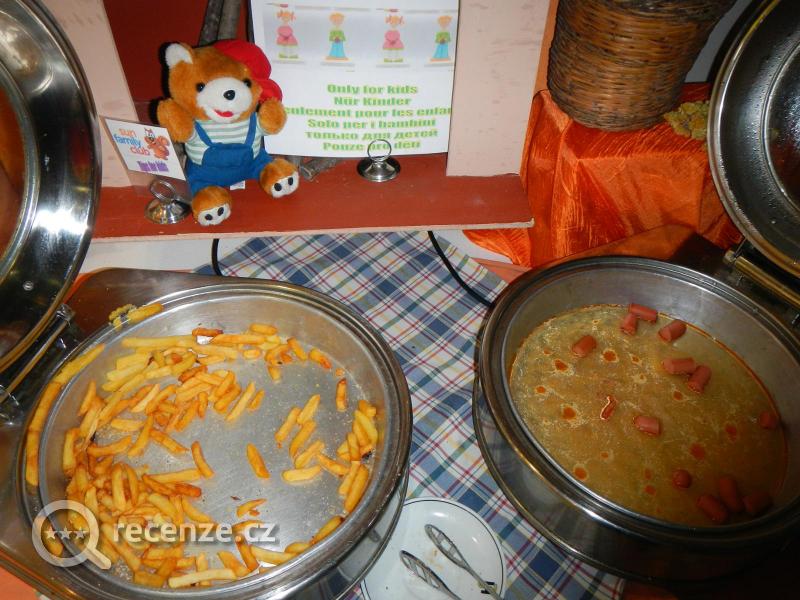 Když napíšu nemocniční strava, nebudu daleko od pravdy. Jídlo bez chuti, z drtivé většiny se jen a jen fritovalo v oleji, jako "menu pro děti" nabízeli denně hranolky, oschlou pizzu a párky, které byly jak ke snídani, tak k obědu, tak k večeři. Šunka, která se nesnědla u snídaně, tak se nakrájela na kousky a smíchala se do těstovin k obědu a k večeři a tak dále... prostě hrozný... jídlo bylo asi největším zklamáním, o pití nemluvě.