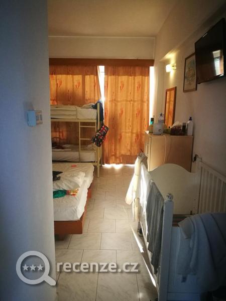 Pokoj malý, starý nábytek, železná palanda jako pristýlka, dveře od balkonu nešli skoro otevřít. Dětská postylka první noc cestovní bez matrace, takže velice nepohodlné, tvrdé. Po upozornění výměna za pěknou dřevěnou postylku. Sprchovy kout plesnivy. Po upozornění se nic nezměnilo. Přes den nám před terasou seděli udržbaři a kouřili, vše šlo do pokoje, kde jsme byli s roční dcerou. Abych se mohla převléknout museli jsme mít zataženo, zaclona nebyla. Nemohla jsem vylézt na terasu třeba jen v prádle pro suché plavky, hned koukali. Ubytování prostě velké zklamání.