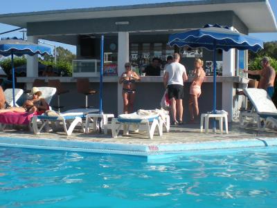 Na baru u bazénu od rána do 17.30 hodin nealko stejné jako k jídlu. Pak se začínají míchat i drinky - Vodka, Gin, Brendy. Nejsou to ale drinky na opití, ale na doplnění tekutin.