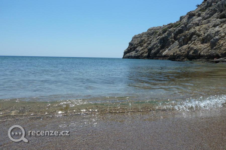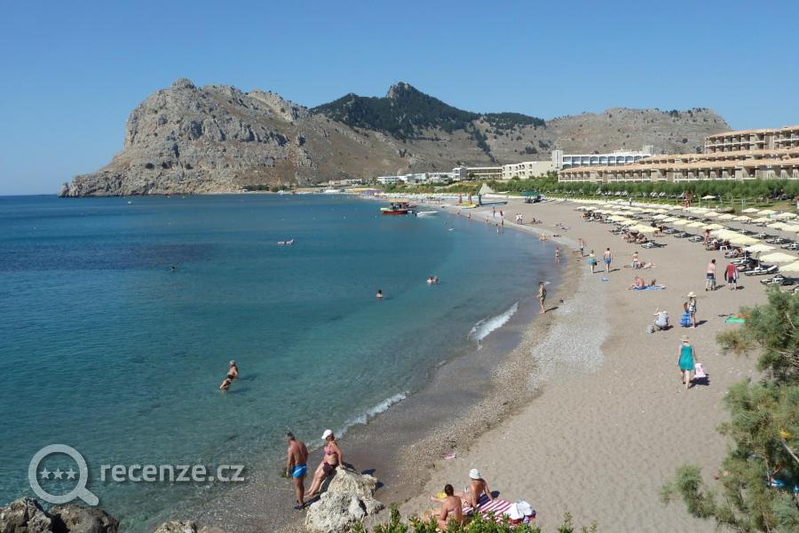 3 pláže, krásné, hrubší písek, oblázky, dosti daleko od hotelu 450 m, 4 euro za lehátko.
