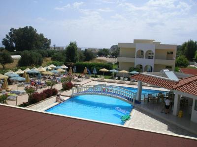 Recepce, výtahy, hlavní budova a tři vedlejší. Trezor za poplatek. Dva vnější bazény, bar, restaurace. Zdarma k využití menší fitness, stolní tenis, volejbal. Za poplatek pak vodní sporty na pláži, kulečník. Hotel pořádá pro své hosty 1x týdně specielní řecký večer.