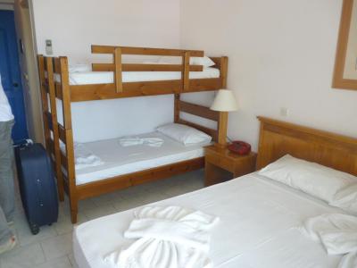 Pokoje a nábytek hodně pamatují, ale nám to nevadilo, na vyspání to stačilo, úklid každý den, bez problémů probíhala výměna ručníků atd. Televizi ani klimu jsme za celý pobyt nepustili, tak ani nevíme, jestli fungovaly, na pokoji byla malá lednička.