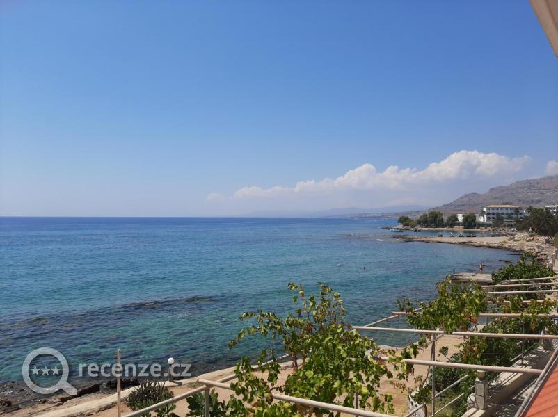 Hotel se nachází v klidnější oblasti mezi městy Pefki a Lardos. Přímo vedle něj je hlavní silnice mezi těmito městy a nepovažovala bych to nutně jako překážku, na každou stranu se dá dojít (200m až 500m) do vedlejšího městečka, kde se můžete najíst, nakoupit v supermarketu nebo najít zajímavější pláž. Také přímo před hotelem je autobusová zastávka (pozor, zastávky jsou na znamení). Hotel se nachází mezi vyčnívající skálou (říkám tomu kamenolom) a mořem; s nízkou zatravněností a málo stromy (ale to bude pravděpodobně celý jižní Rhodos). Hotel je spíše rodinného typu a skládá se ze 3 budov, které jsou architektonicky odlišné. Dostali jsme jeden z novějších pokojů (209) s výhledem na moře (ale po malém zjištění jsou vlastně všechny orientované na moře..), který až na malé nedostatky byl čistý, každý den uklizený a moderně vybavený. Na pokoji funkční klimatizace, lednice, normální záchod, sprcha, nefukční TV (což nám nevadilo, neřešili jsme), balkon. Na některých balkonech jsou i jako bonus kolíky.