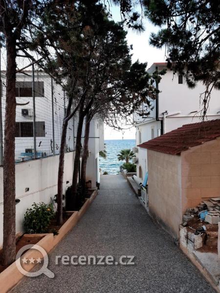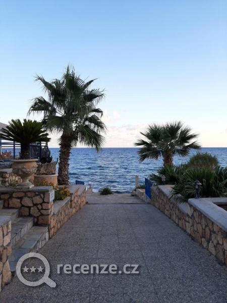 Přístup do moře je přímo před hotelem, ale o pláži se úplně nedá mluvit. Lehátek (občas se slunečníky) je zde pomálu a protože jsou bez poplatku, tak hned od rána funguje lehátková mafie :), která si drží lehátka celý den, i když zde vůbec přítomni nejsou. Přístup do moře je od hotelu dostupný z kamenného mola, které ústí do moře schůdky. Hned za schůdky jsou velké a i ostré kameny, během pár metrů už jen písek. Dosáhnete i 20m od pobřeží (jak kde a jak kdy). Pobřeží je uměle vytvořené, je to beton a oblázky, žádné mušle zde nenajdete, nejsou tu také žádní živočichové (až na pár mini rybek hned na pobřeží). Na kamenech ve vodě sice roste nějaký mech, někdo zmiňoval sasanky, ale za celý pobyt na nás nic nezaútočilo. Písek na "pláži" mezi hotelem a vstupem do moře sice je, ale nic pěkného na ležení. Je zde nepořádek po hostech, pár trsů trávy a mravenci. O "pár" metrů na každou stranu sice jsou pískové pláže, ale ty jsme vzhledem k vytíženosti nevyužívali. Za mě osobně vstup do moře i moře před hotelem ok, pro děti určitě ne a poslední dva dny byly celkem velké vlny a o ty kameny při vylézání z moře se akorát rozbijete. Teplota vody příjemná, moře je velmi slané, takže můžete jen ležet na vodě. Co se týče bezpečnosti, tak jsme byli mile překvapeni a je to možná tím, že je to "uzavřený/soukromý" vstup do vody a nic se nám neztratilo, ani nikomu jinému, o kom víme, nicméně klíče od pokoje jsme si vždy nechávali na recepci.