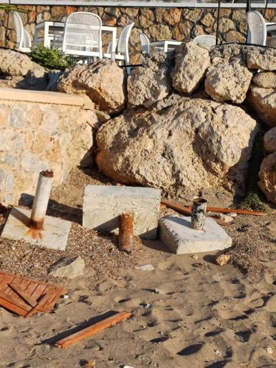 Již při první návštěvě pláže jsme zažili šok. Bordel, špína, rozbitá, roztrhaná a plesnivá lehátka, za která zaplatíte 12 Euro. Pláž malá, takže veškerý bordel a špínu nelze minout, nelze se před ní schovat.